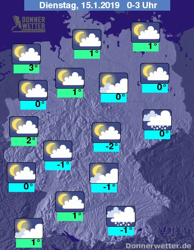 Die Temperaturen sinken in der Nacht auf Werte um 3 Grad C in Ostfriesland und um -2 Grad C im Thüringer Wald.