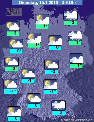 Der Dienstag startet dann vielfach heiter bis wolkig oder aufgelockert bewölkt. Dichtere Wolken, aus denen zeitweise auch Regen-, Schneeregen- oder Schneeschauer fallen können, sind vor allem entlang der Oder sowie südlich der Donau zu finden. Sonst bleibt es überwiegend trocken.