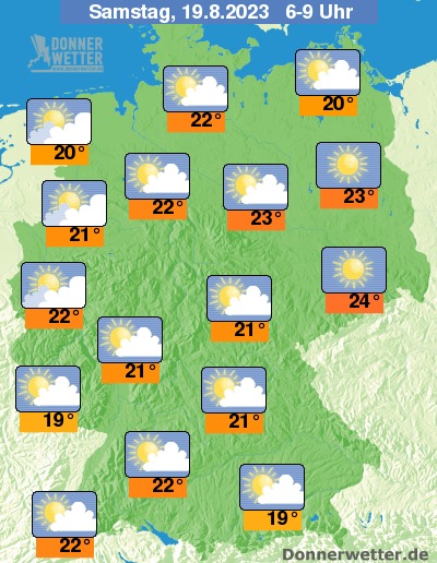 Die Temperaturen erreichen in den Morgenstunden Werte um 19 Grad im Saarland und 24 Grad in der Lausitz.