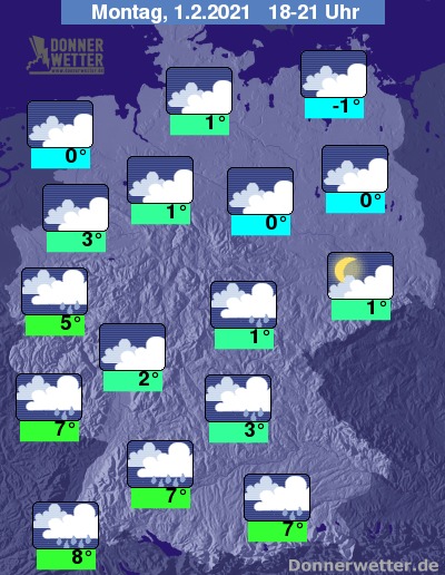 Heute Abend ist es weiterhin bedeckt und es fällt im Süden zeitweise, sonst gebietsweise Regen, im Norden und über Thüringen auch lokal Schneeregen oder Schnee. Über Sachsen und im Nordosten bleibt es trocken. Die Temperatur liegt bei -1 Grad an der Müritz und bis 8 Grad im Oberrheingraben.
