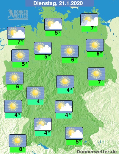 Die Temperaturen klettern nach frostiger Nacht im Laufe des Nachmittags auf Höchstwerte von meistens 4 bis 9 Grad.