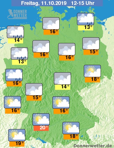 Am frühen Nachmittag halten sich im Nordwesten und Norden kompakte Schichtwolken, aus denen es zeit- und gebietsweise regnet, an der Nordseeküste, sowie in Schleswig-Holstein auch intensiver.