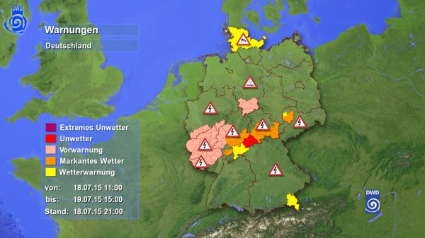 Am Sonntag zeigt sich hier und da die Sonne, häufig ziehen aber auch kompakte Wolken durch und insbesondere nachmittags entwickeln sich zeitweise Schauer und teils kräftige Gewitter. Im äußeren Nordwesten fällt zeitweise Regen. Die Temperatur steigt auf 19 Grad an der Nordsee und bis auf schwülheiße 32 Grad in München.