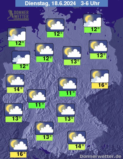 Die Temperaturen gehen in den Frühstunden auf Werte um 16 bis 11 Grad zurück.