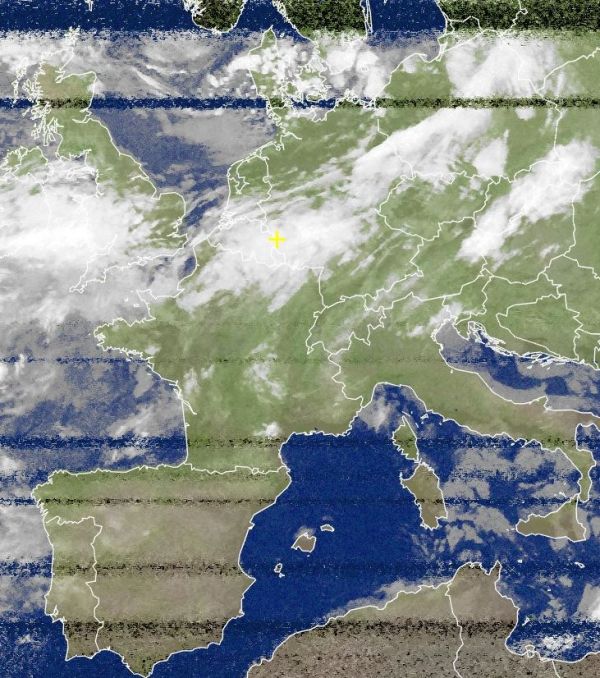 Auf dem Satellitenfoto von heute Morgen sind dichte Regenwolken von den Britischen Inseln, über Benelux, Deutschland bis nach Polen zu erkennen. Hierbei handelt es sich um die Ausläufer des Sturmtiefs "Iwan" über Skandinavien, es brachte und bringt auch weiterhin stürmisches Wetter vor allem über Dänemark und Norddeutschland.
