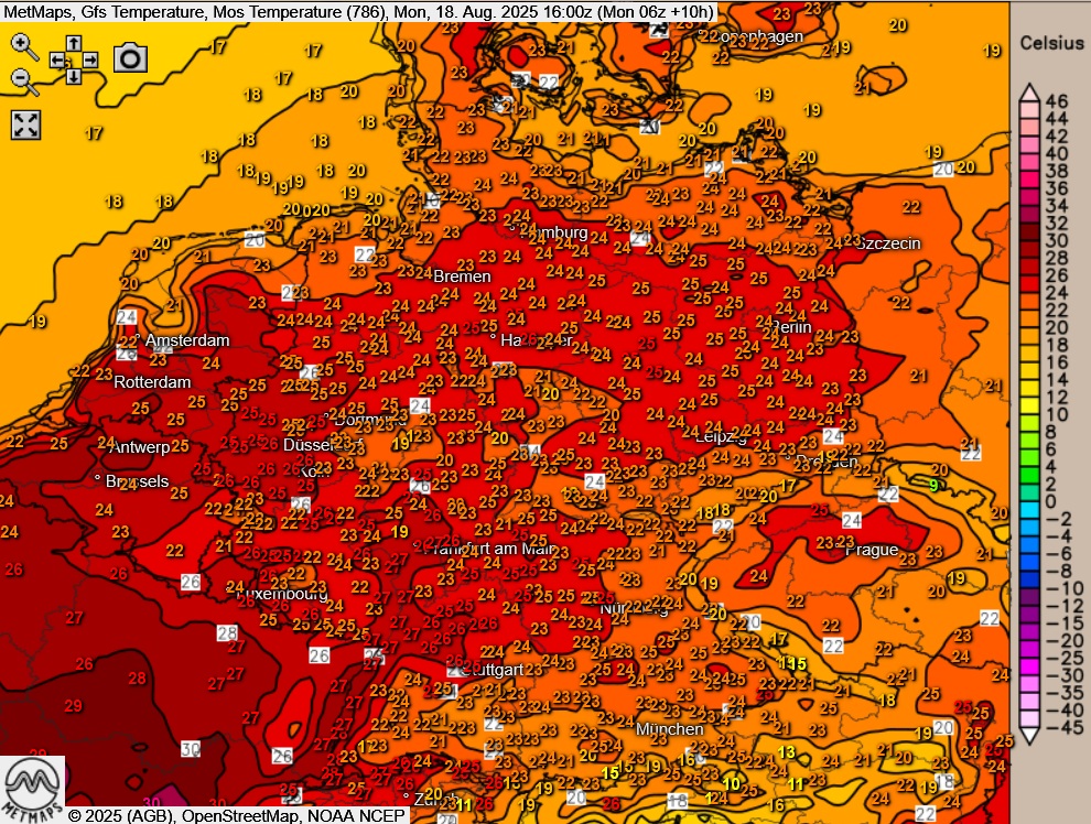 Die Temperaturen erreichen Höchstwerte um 22 Grad an den Küsten und um 28 Grad im Rheinland.
