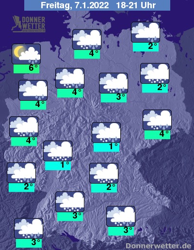 Heute Abend bleibt es weiterhin bedeckt, an der Nordsee kann es auch mal auflockern. Es fällt vielerorts Schnee, Schneeregen oder Regen. Die Temperatur liegt bei 1 Grad im Thüringer Becken und bis 6 Grad an der Nordsee. An der Ostsee ist es teils stürmisch, an der Nordsee herrscht oft sogar Sturm.