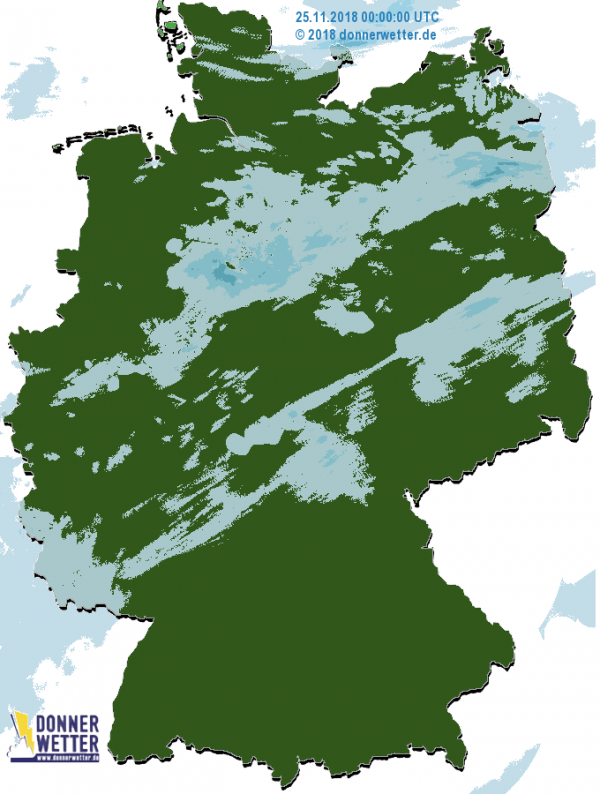 Heute zeigt sich das Wetter über dem Norden oft heiter bis sonnig, über der breiten Landesmitte ist es teils aufgelockert, teils aber auch stark bewölkt, dazu jedoch zumeist trocken. Im Alpenvorland halten sich dichte Wolken und es fällt zeitweise Schnee, Schneeregen oder Regen. Die Temperatur steigt auf 2 Grad im Vogtland und bis etwa 6 Grad im Oberrheingraben.