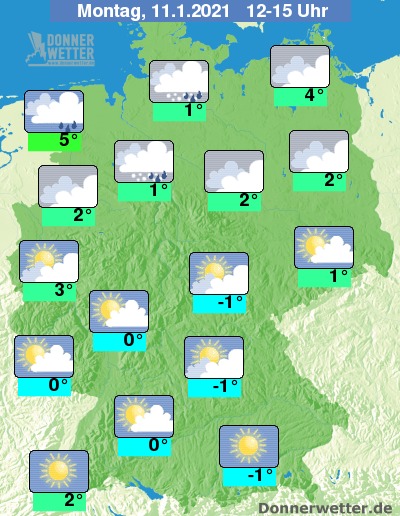 Die Temperaturen erreichen am Montag Höchstwerte um -1 Grad in Franken und um 6 Grad an der Nordseeküste.