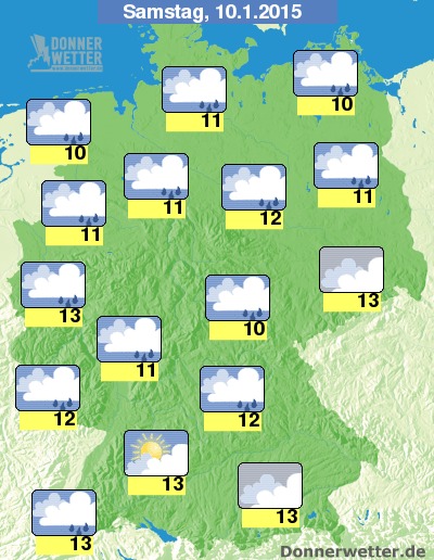 Heute setzt sich das nasse und verbreitet sehr windige Wetter fort, dabei bleiben die Wolken weitgehend dicht, ganz vereinzelt kann es im Süden auch mal auflockern. Es fällt zeitweise, teils kräftiger Regen. Die Temperaturen steigen auf 10 Grad an der Ostsee und bis 13 Grad in Schwaben. Es weht verbreitet starker bis stürmischer Wind, dabei sind in Böen Sturm und vereinzelt auch schwere Sturmböen möglich. Auf den Hochlagen der Mittelgebirge sowie an den Küsten sind orkanartige Böen und vereinzelt auch Orkanböen möglich.