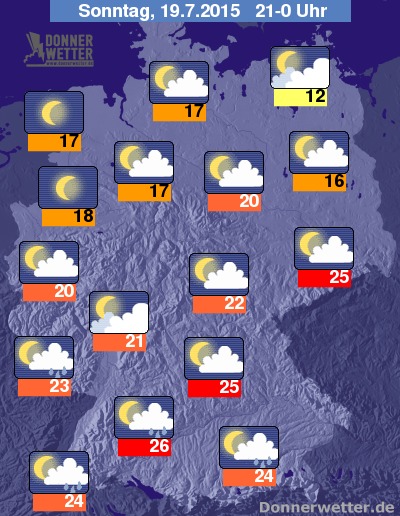Heute Abend klart der Himmel besonders über dem Nordwesten der Republik verbreitet auf, aber auch sonst lockert es über der Nordwesthälfte meist auf und es bleibt trocken. In Süddeutschland ist es zum Teil aufgelockert, häufig aber auch stark bewölkt und es sind einzelne Schauer, am Alpenrand auch Gewitter möglich. Die Abendtemperatur liegt bei 26 Grad in Stuttgart und etwa 12 Grad an der Müritz.