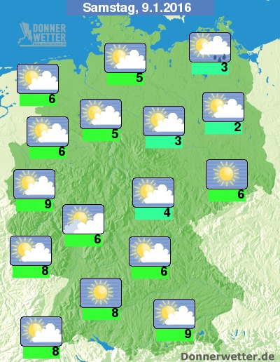 Dabei zeigt sich besonders der Samstag in vielen Teilen der Republik freundlich, die Sonne kommt zwischen meist nur lockeren Wolken immer wieder zum Zuge und gebietsweise wird es sogar sehr sonnig. Ein größeres Regenrisiko besteht im Ostseeumfeld, sonst bleibt es voraussichtlich aber weitgehend trocken. Die Temperatur steigt auf 2 Grad an der polnischen Grenze und bis 9 Grad in Köln.