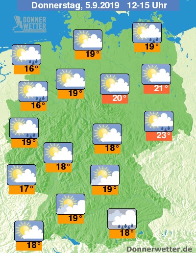 Die Temperaturen bewegen sich zwischen kühlen 16 Grad im Emsland und noch angenehmen 23 Grad in der Lausitz.