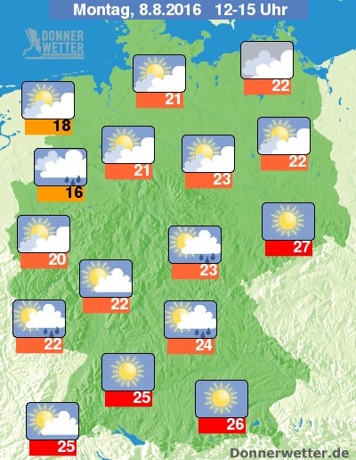 Heute ist es zunächst vor allem im Süden und in Sachsen verbreitet sonnig und trocken, sonst sind hier und da heitere Abschnitte möglich, oft ist es aber auch wechselnd bis aufgelockert, teils auch stark bewölkt, dabei sind gebietsweise Schauer, örtlich auch Gewitter möglich. Die Temperatur steigt auf 18 Grad im nördlichen Emsland und etwa 27 Grad in Görlitz.