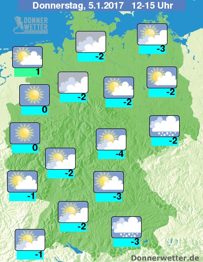 Es bleibt winterlich! Auch am Nachmittag bleiben Plusgrade die Ausnahme. Lediglich am Niederrhein und in Nordseenähe wird die 0 Grad Marke geknackt. Dazu scheint vor allem im Westen vielerorts die Sonne. Zwischen Erzgebirge und Alpen setzt hingegen wieder Schneefall ein und bis zum Abend ist mit einigen Zentimetern Neuschnee zu rechnen.