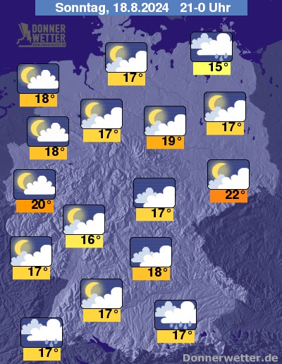 Die Temperaturen gehen in den Frühstunden zurück auf Werte um 18 bis 11 Grad.