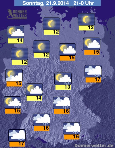 Heute Abend ziehen sich Schauer und Gewitter in den Süden und den äußeren Osten des Landes zurück, sonst lockert die Bewölkung vielfach auf und gebeitsweise wird es klar, dazu bleibt es trocken. Die Abendtemperatur liegt bei 17 Grad im Breisgau und etwa 12 Grad an der Elbe.