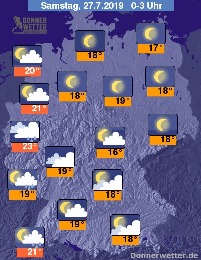 Die Temperaturen sinken in der Nacht auf Werte um 22 Grad in der Kölner Bucht und um 14 Grad im Thüringer Wald.