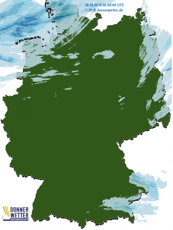 Es wird am Sonntag in ganz Deutschland sonnig und warm. Nur über Nord- und teilweise auch Ostsee ziehen Wolken hinweg. Am Tag des offenen Denkmals gibt es somit gute Gelegenheit bei schönem Wetter neues zu entdecken. Regen fällt nur sehr wenig an den Küsten. Gestern war es ähnlich, wie die 24-Stunden Radarsummen-Karte von gestern zeigt: