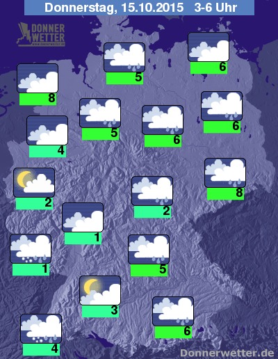 In der kommenden Nacht bleibt der Himmel über dem Land weitgehend bedeckt. Im Westen und Südwesten sind nur gebietsweise Auflockerungen möglich. Im Westen und Nordwesten bleibt es dazu weitgehend trocken, im großen Rest des Landes fällt jedoch zeitweise, im Süden auch oft langanhaltender Regen. In höheren Lagen ist Schneeregen oder Schnee mit entsprechender Glättegefahr möglich. Die Temperatur liegt bei 8 Grad in Ostfriesland und 1 Grad am Pfälzer Wald.