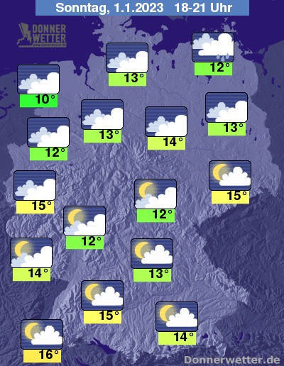 Heute Abend zeigt sich der Himmel über dem Süden und über Sachsen verbreitet locker bewölkt, über der breiten Landesmitte ist es eher stark und teilweise aufgelockert bewölkt. Über dem Norden ist es verbreitet bedeckt, hier ist etwas Regen möglich, sonst bleibt es weitgehend trocken. Die Temperatur liegt bei 10 Grad in Cuxhaven und 16 Grad in Freiburg. Der Wind weht lediglich an der Nordsee noch oft stürmisch.