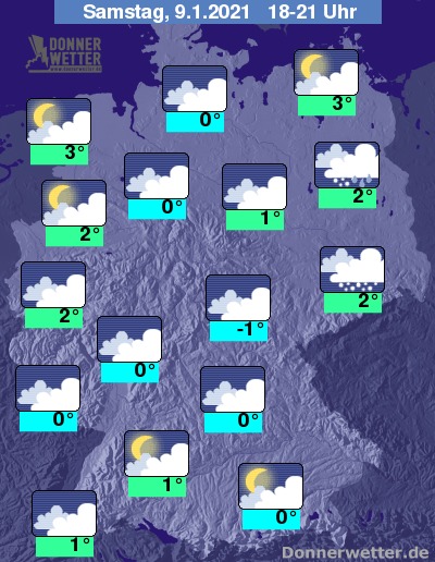 Heute Abend bleibt es weiterhin meist stark bewölkt, Auflockerungen sind am ehesten im Südosten, Nordwesten und im Ostseeumfeld möglich. Von Sachsen bis nach Brandenburg fällt vielerorts Schnee und zum Teil Schneeregen, im übrigen Bundesgebiet bleibt es hingegen weitgehend trocken. Die Temperatur liegt bei -1 Grad in Erfurt und bis 3 Grad in Rostock.