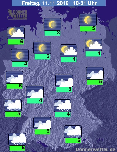 Heute Abend halten sich über der Landessüdhälfte verbreitet dichte Wolken und im Süden fällt dazu auch vielerorts Schnee, Schneeregen oder Regen, dabei besteht stellenweise Glättegefahr! Weiter nach Norden hin zeigt sich der Himmel dagegen oft leicht bewölkt oder sternenklar, hier bleibt es trocken. Die Abendwerte liegen bei 2 bis 6 Grad.