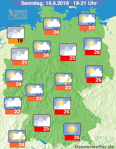 Heute Abend ist es über dem Südosten und über dem äußeren Osten weiterhin heiter bis sonnig und trocken. Weiter nach Norden und Westen hin ist es häufig stark, teils auch aufgelockert bewölkt, dabei bilden sich gebietsweise Schauer, Gewitter sind ebenfalls möglich. Die Temperatur liegt bei 19 Grad an der Nordseeküste und um 26 Grad in der Lausitz.
