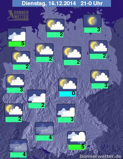 Heute Abend bleibt es im Süden Deutschlands weitgehend dicht bewölkt und es fällt zeitweise Regen oder Schneeregen, sonst ist es auch häufig aufgelockert, oft aber auch stark bewölkt, dazu bleibt es weitgehend trocken. Im Ostseeumfeld ist der Himmel auch verbreitet sternenklar. Die Abendtemperatur liegt bei 5 Grad in München und um 0 Grad am Thüringer Wald.
