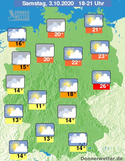 Heute Abend klingen die Niederschläge im Süden und Westen immer weiter ab und hier und da lockert der Himmel auch etwas auf. Im Norden und Osten zieht es sich dagegen eher zu, teils ist es auch aufgelockert bewölkt, dazu ist regional Regen möglich. Die Temperatur liegt bei 11 Grad am Westerwald und anfangs bis zu 26 Grad in Dresden.