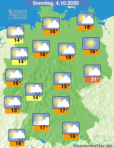 Am Sonntag ist es in den westlichen Landesteilen meist stark, teils aufgelockert bewölkt, dabei fällt gebietsweise Regen. In der übrigen Republik ist es dagegen verbreitet heiter bis wechselnd bewölkt, nicht selten sogar sonnig, dabei bleibt es trocken. Die Temperatur steigt auf 14 Grad entlang der Ems und bis 21 Grad in der Lausitz.