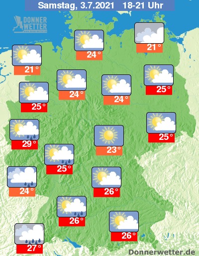 Am Sonntag zieht wechselnde oder starke Bewölkung durch, vor allem über der Südwesthälfte bilden sich im Tagesverlauf vielerorts Schauer und auch lokale Gewitter. Die Temperatur steigt auf 19 Grad im Saargau und bis 28 Grad in der Lausitz.
