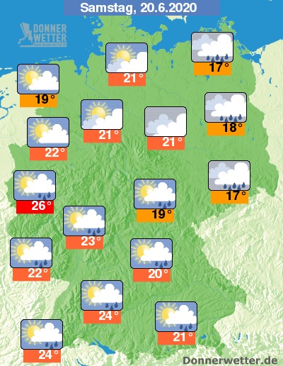 Heute zeigt sich das Wetter über der Südwesthälfte Deutschlands oft heiter bis sonnig, jedoch ziehen hier und da auch dichte Wolken mit einzelnen Schauern und örtlich auch mit Gewittern durch. Im Norden und Osten ist es meist stark, teils aber auch aufgelockert bewölkt, dazu ist hier etwas Regen möglich. Die Temperatur steigt auf teils nur 17 Grad an der Oder und bis 26 Grad in Köln.