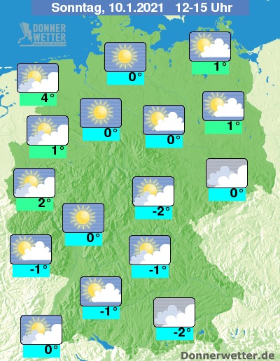 Heute Nachmittag bleibt es über dem Alpenvorland meist stark bewölkt und es fällt hier örtlich auch etwas Schnee, sonst ist es teils stark bewölkt, oft ist es aber auch heiter bis sonnig, dabei bleibt es weitgehend trocken. Die Temperatur steigt auf -2 Grad in München und bis 4 Grad in Cuxhaven.