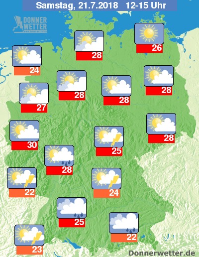 Heute Nachmittag bilden sich über der Südhälfte Deutschlands vielerorts Schauer und auch regionale Gewitter. Weiter nach Norden hin bleibt es bei meist wechselnder Bewölkung trocken. Vor allem n den Küstengebieten ist es auch verbreitet sonnig. Die Temperatur liegt bei 24 Grad an der Nordsee und um 30 Grad im Rheinland.
