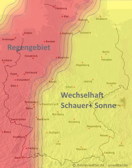 Unsere Karte zeigt die Niederschlags- / Sonnenverteilung am morgigen Samstag: