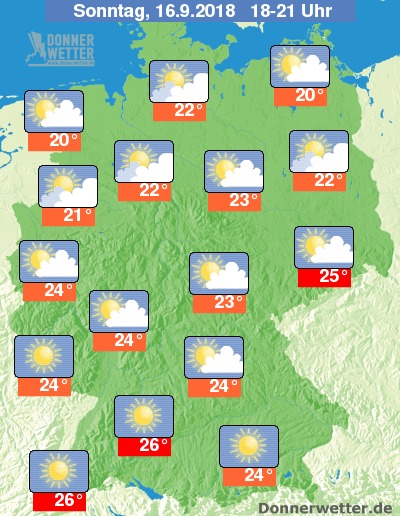 Heute Nachmittag ist es überwiegend heiter bis sonnig, vor allem im Norden, aber auch im Nordwesten ist es jedoch oft auch wechselnd und zum Teil stark bewölkt. Im übrigen Bundesgebiet ziehen hingegen nur selten dichtere Wolken durch. Es bleibt landesweit trocken. Die Temperatur liegt bei 19 Grad entlang der Küsten und bis 25 Grad m Oberrheingraben.