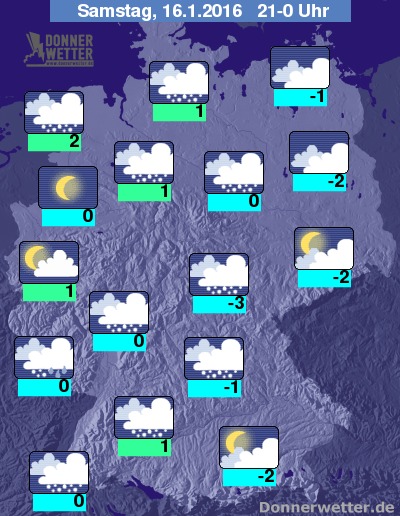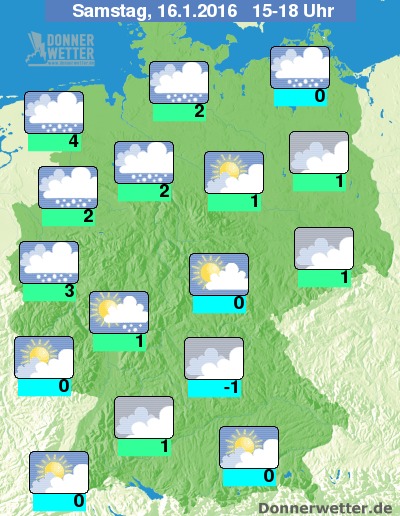 Heute Nachmittag ziehen im Westen und Norden dichte Wolken und zum Teil kräftige Schneefälle durch, vor allem im Westen ist auch vorübergehend teils Schneeregen oder Regen möglich, dabei besteht verbreitet erhöhte Glättegefahr! Sonst ist es meist stark, teils aber auch aufgelockert bewölkt und mehrheitlich trocken, gegen Abend zieht es sich jedoch auch hier weitgehend zu, jedoch fällt dabei nur gebietsweise etwas Schnee. Die Temperatur steigt auf -1 Grad in Franken und bis 4 Grad in Ostfriesland.