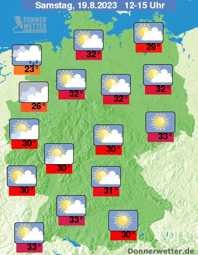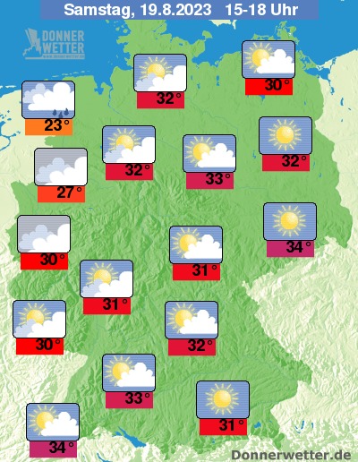 Die Temperaturen erreichen am Nachmittag Höchstwerte um 23 bis 34 Grad.