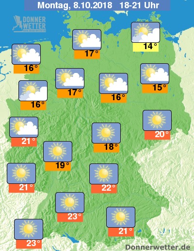 Die Temperaturen sinken bis zum späten Abend auf Werte um 16 Grad C am Oberrhein und um 10 Grad C an den Küsten.