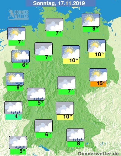 Der Sonntag zeigt sich das Wetter im Norden und Osten meist trüb, Auflockerungen sind allerdings möglich und zudem bleibt es hier trocken. Im übrigen Land ziehen verbreitet dichte Wolken durch, dabei fällt gebietsweise Regen. Zum Teil mischt sich in die Niederschläge auch Schneeregen oder Schnee. Die Temperatur steigt auf 4 Grad im Saargau und bis 15 Grad in der Lausitz.