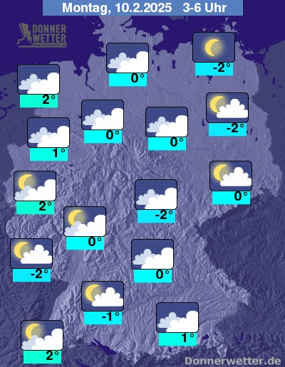 Die Temperaturen gehen in den Frühstunden zurück auf Werte um 2 bis -2 Grad.