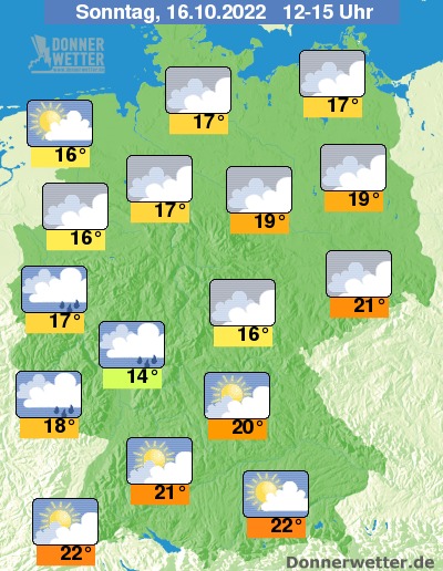 Heute Nachmittag zeigt sich vor allem im Süden, aber auch im Norden die Sonne, wobei ebenfalls dichte Wolken durchziehen können, dazu bleibt es trocken. Im übrigen Land bleibt es meist stark bewölkt und hier und da fällt auch etwas Regen. Die Temperatur liegt bei 14 Grad am Westerwald und 22 Grad am Oberrhein.