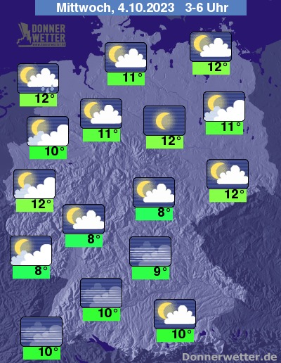 In der Nacht zum Mittwoch klingen die Schauer auch im Süden und Osten meist rasch ab und der Himmel lockert auf, häufig ist es auch sternenklar. Im Umfeld der See ziehen dagegen auch oft dichte Wolken durch, hier können sich weiterhin einzelne Schauer bilden. Die Temperatur sinkt auf 12 Grad in Köln und bis 8 Grad in Jena.