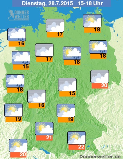 Heute Abend ist es in Süddeutschland locker oder aufgelockert bewölkt und trocken. Besonders im Norden und Westen ziehen jedoch dichte Wolken durch, die auch etwas Regen bringen können. In den übrigen Landesteilen ist es zumeist aufgelockert bewölkt und trocken. Die Abendtemperatur liegt bei 19 Grad in München und etwa 14 Grad am Rande des Harzes.