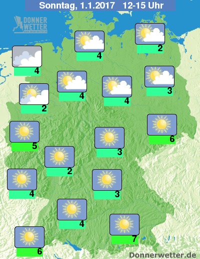 Heute Nachmittag scheint von der breiten Landesmitte bis in den Süden Deutschlands verbreitet die Sonne bei höchstens lockerer Bewölkung. Mehr und zunehmend auch dichte Wolken ziehen über den Norden und Nordwesten des Landes hinweg. Es bleibt landesweit trocken. Die Temperatur steigt auf 2 Grad am Westerwald und bis 6 Grad im Breisgau.
