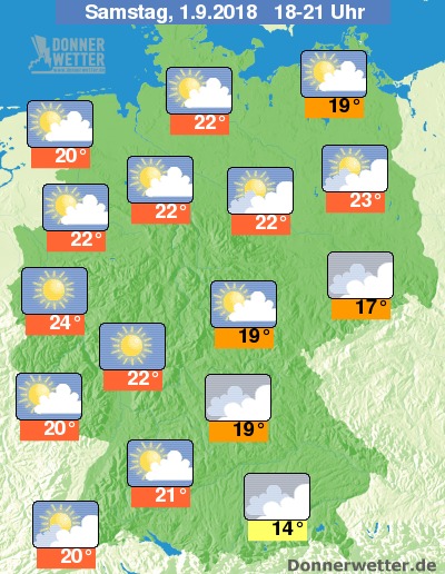 Heute Abend kann es am Alpenrand noch zeitweise regnen, auch im übrigen Bayern und über Sachsen halten sich überwiegend dichte Wolken, dazu ist es hier schon trocken. Sehr freundlich mit viel Sonnenschein und meist nur wenigen Wolken präsentiert sich die Nordwesthälfte des Landes, hier bleibt es ebenfalls trocken. Die Temperatur liegt bei 14 Grad in München und bis 24 Grad in Köln.