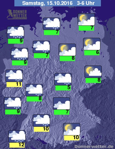 In der Nacht zum Samstag bleibt es im Osten und Nordosten meist aufgelockert bewölkt und trocken. Im übrigen Land hält sich hingegen dichte Bewölkung und es fällt gebietsweise auch Regen. Die Temperatur sinkt auf 12 bis 7 Grad.