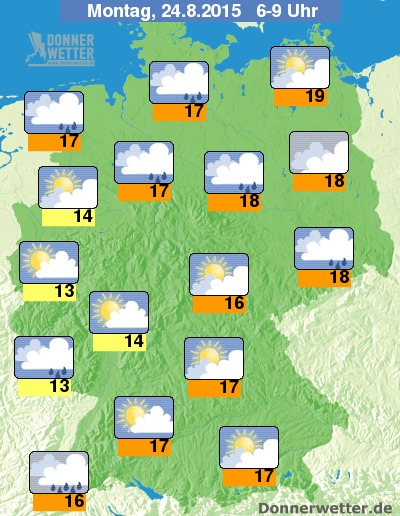 In den frühen Morgenstunden des Montag lockern die Wolken im Westen und Südwesten allmählich auf und die Schauer lassen nach.