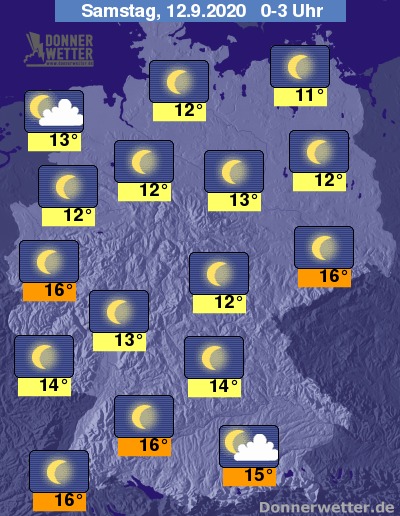 Bis zu den Frühstunden kühlt die Luft auf 16 bis 11 Grad ab.